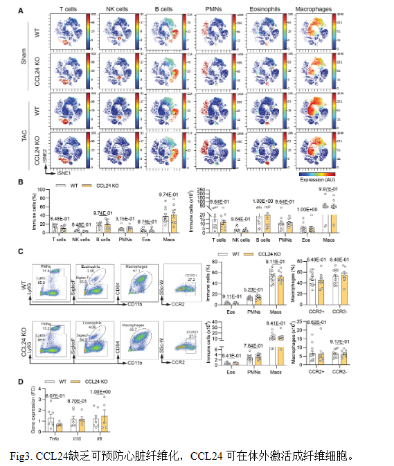 結論3:CCL24缺失可防止心臟纖維化,而CCL24在體外可激活成纖維細胞。